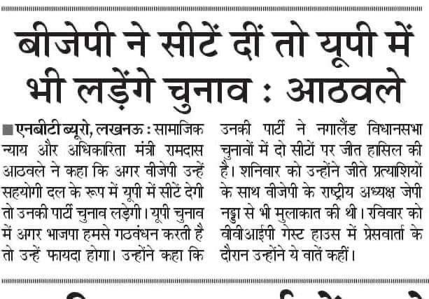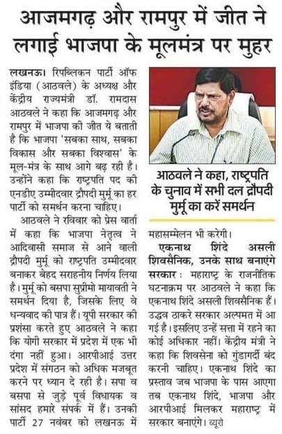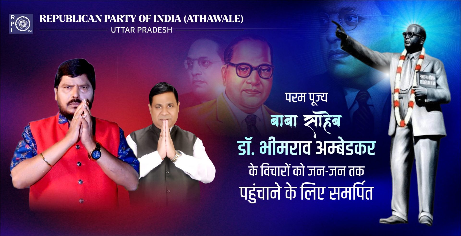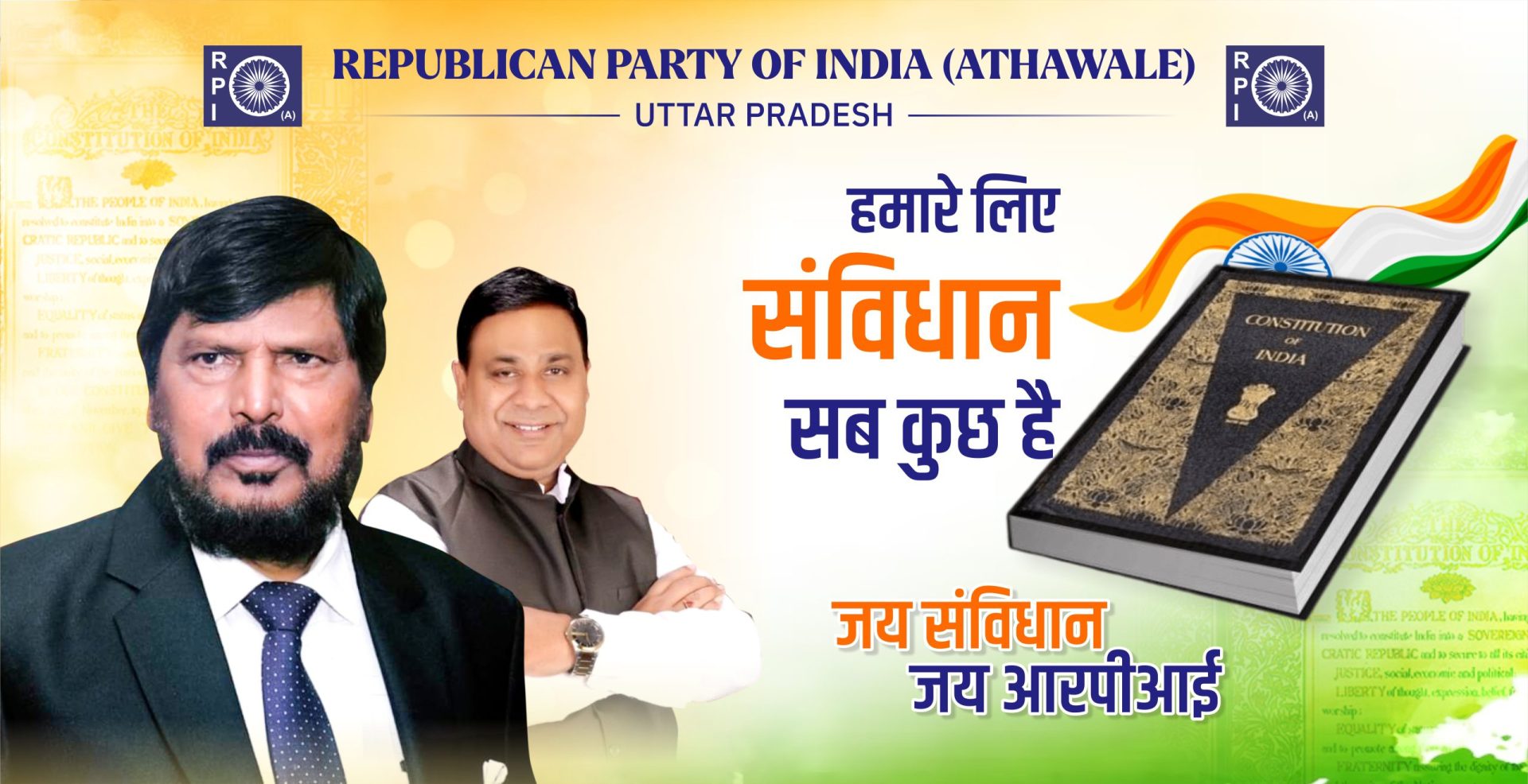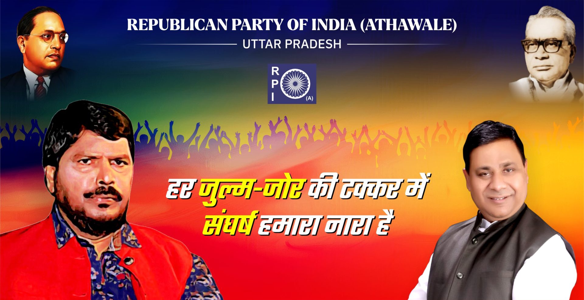 आर.पी.आई (ए)- उ.प्र. सशक्त और विकसित भारत के निर्माण हेतु प्रतिबद्ध है, लेकिन ये समस्त देशवासियों के विश्वास और अपार समर्थन के बिना संभव नहीं है। आप भी हमारे साथ जुड़िए और उस अभूतपूर्व परिवर्तन का हिस्सा बनिए|