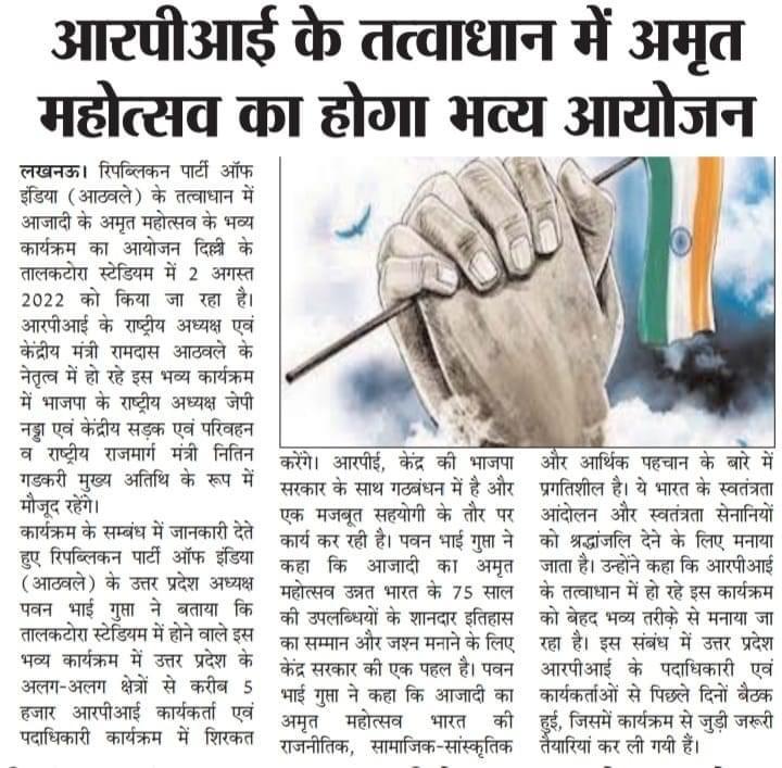 रिपब्लिकन पार्टी ऑफ इंडिया (आठवले) परम श्रद्धेय बाबा साहेब डॉ. भीमराव अम्बेडकर जी के सामाजिक न्याय के विचार से उत्तर प्रदेश के जनमानस को जागरूक कर रही है ...